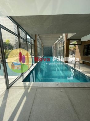 O apartamento possui hall de entrada, sala em dois ambiente, ar condicionado, sacada, lavabo, cozinha integrada com armarios planejados e área de serviço, hall de distribuição, dois dormitórios em suites com armários planejados e dois banheiros completos.