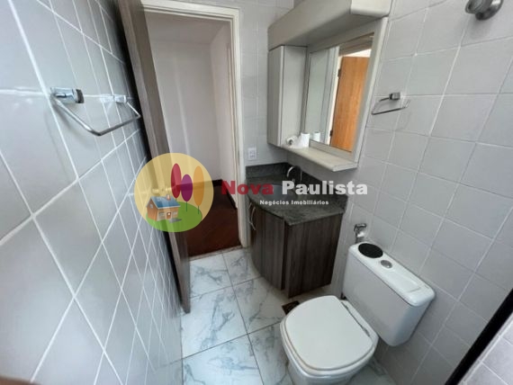 Apartamento muito ensolarado, para chegar e entrar, totalmente reformado, possui sala para dois ambientes, terraço, cozinha com armários, área de serviço com banheiro de empregada, aquecedor central a gás, hall de distribuição, dois quartos com armários e um banheiro completo com box.
