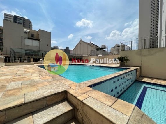 Prédio com portaria 24 horas, câmeras de segurança, piscina, salão de festa e quadra.